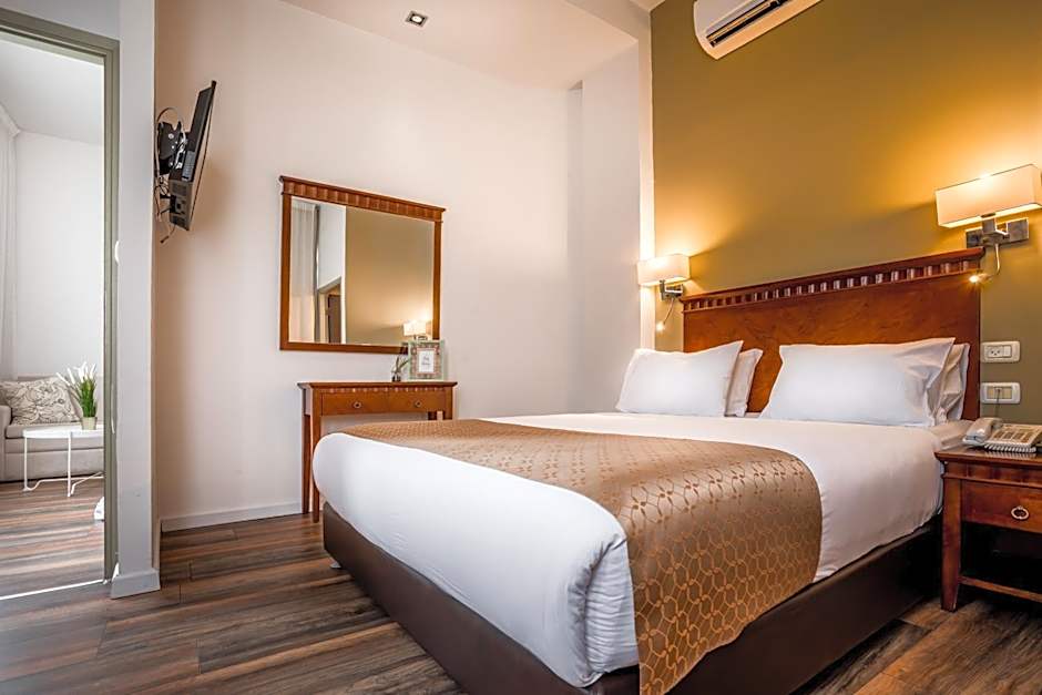 Large, room with attached bathroom with parquet floors. Offers free Wi-Fi, air conditioning, and a flat-screen TV with cable channels.